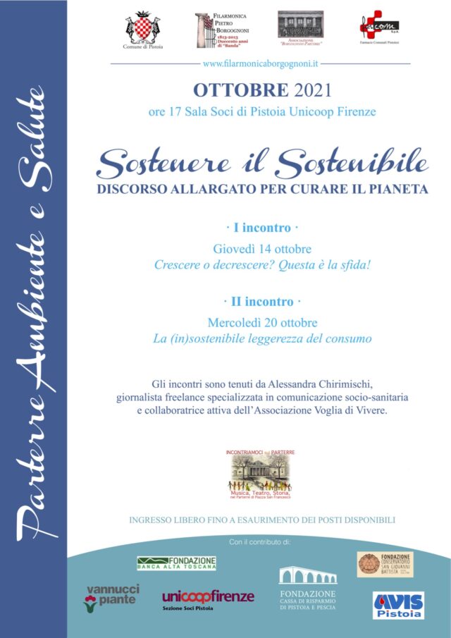 Un progetto importante per valutare lo stato di salute nostro e dell’ambiente: organizzato in collaborazione con Filarmonica Pietro Borgognoni, sostenuto da Far.Com Pistoia, preveda due appuntamenti che si sono tenuti alla Sala Soci di Coop Pistoia.